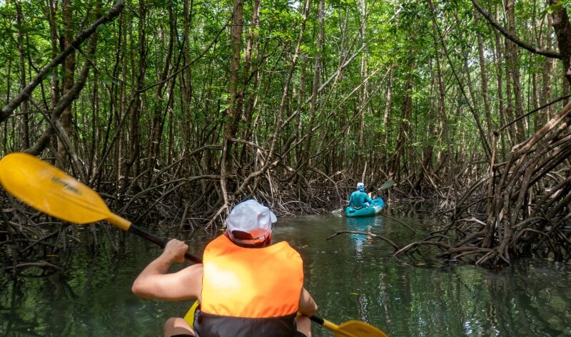 Mit dem Kajak durch smaragdgrüne Tunnel.